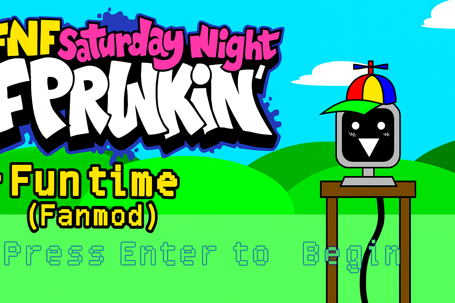 Step onto a whimsical stage, and players will encounter Mr. Computer standing in the middle, smiling brightly beneath a cheerful sky. Surrounded by green hills and sunny vibes, this grooves to the beat with pure joy. Above this creature, Mr. Sun twirls in time with the music, radiating playful energy that pulls you into the action. This vibrant scene sets the mood for a lighthearted showdown, turning every note into part of a dazzling musical performance.
