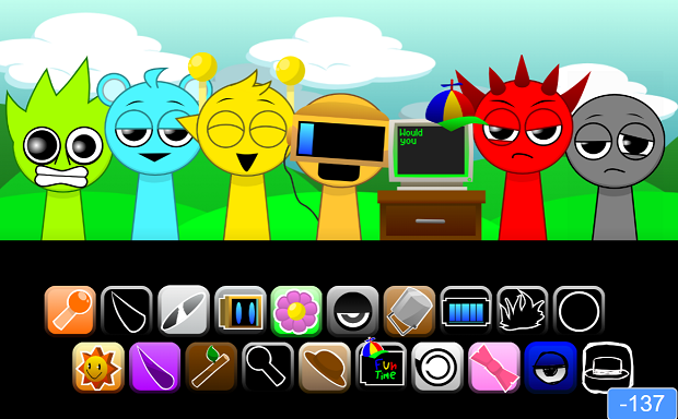 With Sprunki All Characters, your task is to blend the colorful sound icons with the characters to craft music. Initially, you will encounter the normal mode, creating music with delightful and cheerful sounds. If players want to switch modes, this game offers the core mechanics: simply put the black icon on the character to change mode.