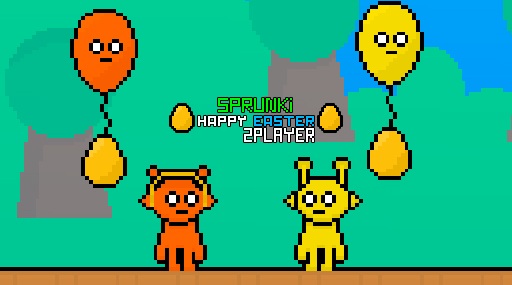 Sprunki Happy Easter 2Player is a fun multiplayer game that brings friendly competition to the Easter season. Two players join a fast-paced race to collect colorful balloon eggs scattered across a bright pixel world. The game’s simple controls and charming design make it easy to play but hard to master. Each round becomes a hilarious test of timing, reflexes, and precision as you outjump your opponent. Step into the world of Sprunki and see who can become the ultimate egg-collecting champion this Easter!