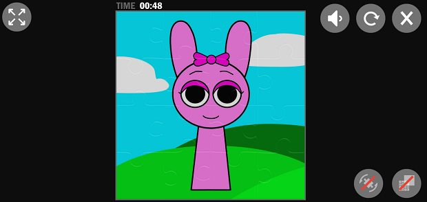 Sprunki Jigsaw is a free online platform that allows you to play endlessly. This puzzle game challenges players with a total of 15 groovy Sprunki characters. In order to start your journey, you need to choose a Sprunki image first. This brain game enables you to choose the difficulty form: 16 pieces, then 36 pieces, 64 pieces, and the hardest one, 100 pieces. Your task is to arrange the puzzle into a perfect Spunki picture as fast as possible.