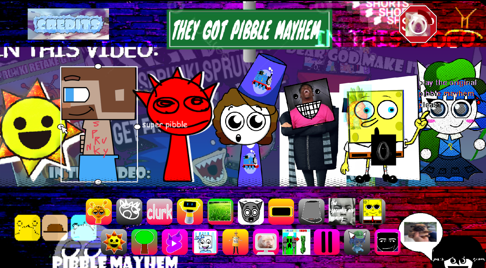 Sprunki Mayhem (Pibble mayhem X Sprunki) is a thrilling world of musical chaos where rhythm rules reality. In this realm, you will assume the role of a maestro in a wild orchestra, creating distinctive music and rhythm that will bring your eccentric Sprunks to life. Let us now engage in rhythmic experimentation, investigate timbres, and generate compositions that are entirely unique.