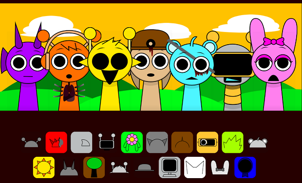 This fan-made version does not feature the horror theme. Players will encounter Sprunki on the bright theme with dynamic and funny sounds. Yet, here are several highlighted features in Sprunki’s design. Some appear with the original appearance, while Raddy, Clukr, Oren, Owakcx, Garnold, Tunner, and Sky have some eerie features.