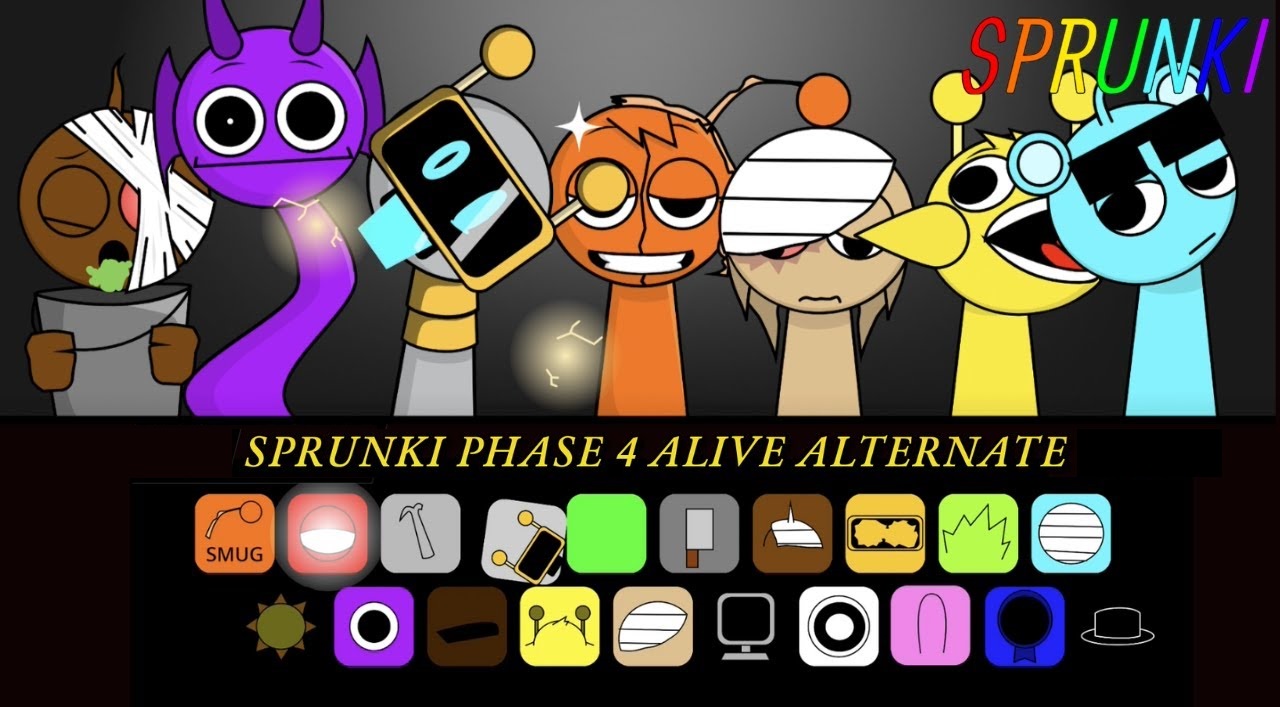 Sprunki Phase 4 Alive Alternate reimagines the horror-filled fourth phase with a refreshing concept of “alive.” Instead of focusing only on fear, this edition introduces characters wrapped in bandages that symbolize healing and survival. The grey avatars and colorful Sprunki figures carry their wounds but remain active, creating a powerful theme of resilience woven into the eerie atmosphere. Jump into this alternate world and compose your track today!