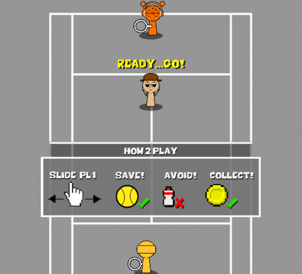 This game not only challenges you to hit a single ball in turn, but also tests your reflexes with intriguing challenges. Particularly, Simon will speed up and sometimes serve two balls in different directions, requiring your quick reaction. Besides, the opponent will throw bottles toward you, distracting your vision. Blocking this object will lead the game to end.