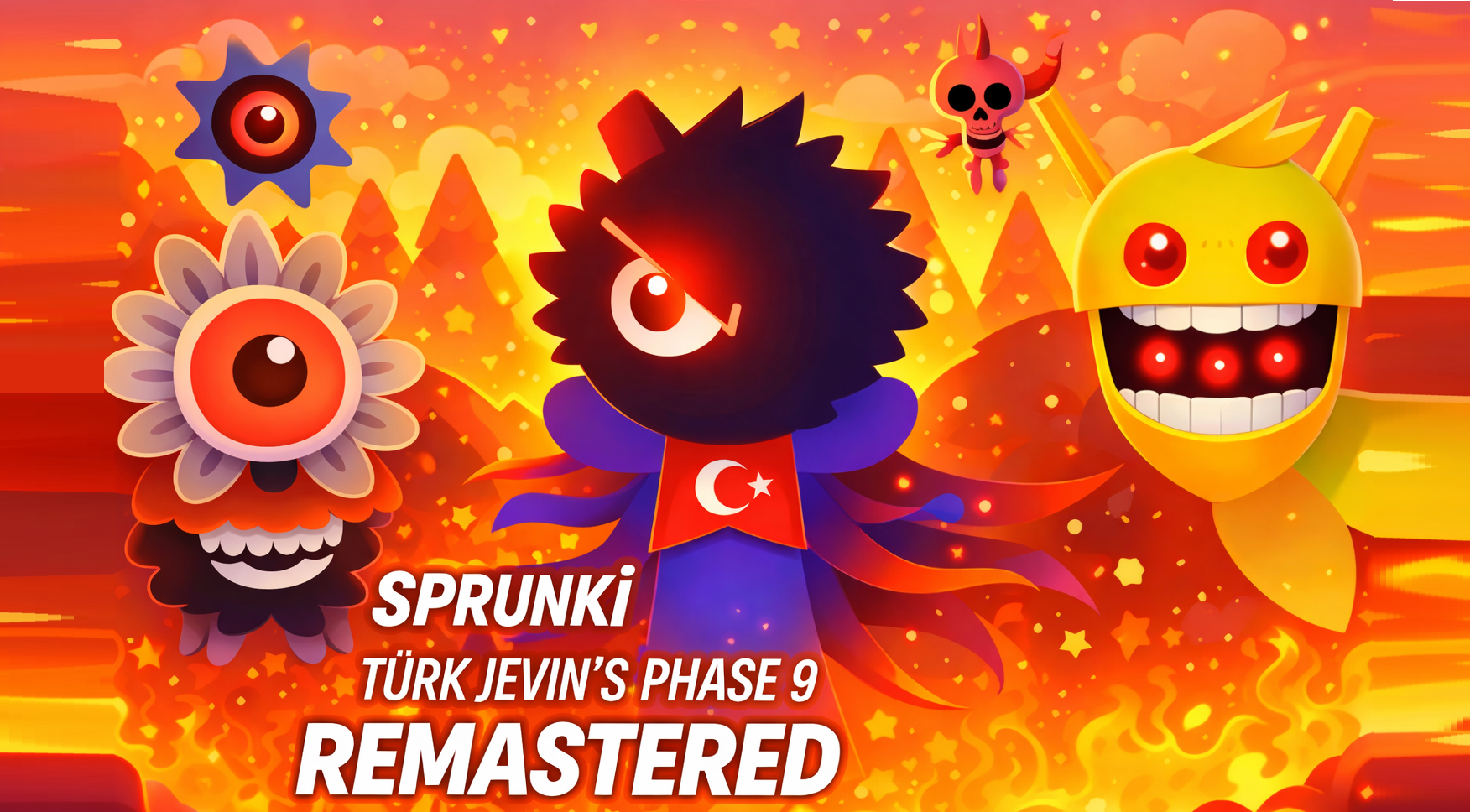 Turk Jevin’s Sprunki: Phase 9 REMASTERED centers on combining sound icons to create layered music tracks. You create music by placing and swapping icons to discover new sound patterns. The red-dim environment enhances the experience, making each combination feel more dramatic. With no strict limits, players can freely explore and shape their own intense musical identity.